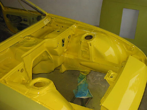 All the suspension parts have been sand blasted, epoxy primed and painted base coat/clear coat. Double yellow...2002 VW/Porsche color.