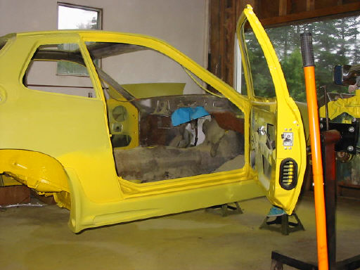 I painted the door jams with the doors off the car and have installed the doors and fenders permanently.