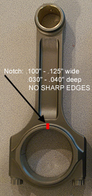 At the same time, the sources I consulted with today both made the independent and unsolicited suggestion that the rods could be notched in precisely the way Crower suggested. As further corroboration, without me disclosing any of the info I had previously collected from Crower (and posted here), they both recommended that notch be .125" and .020"-.040" deep, which were the same specs that Crower suggested.