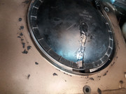 Next, carefully remove the “saucer”. This is done the easiest by first pushing the fan control lever in the center console all the way to the right, into the fully open position. The pivoting joint can be separated at the pivot point with careful manhandling – I find it easier to bend the two tabs of the pivot joint holding it to the “saucer” slightly to each side and pull the saucer free. Do bear in mind, the plastic is old and brittle and may break if you’re not careful.