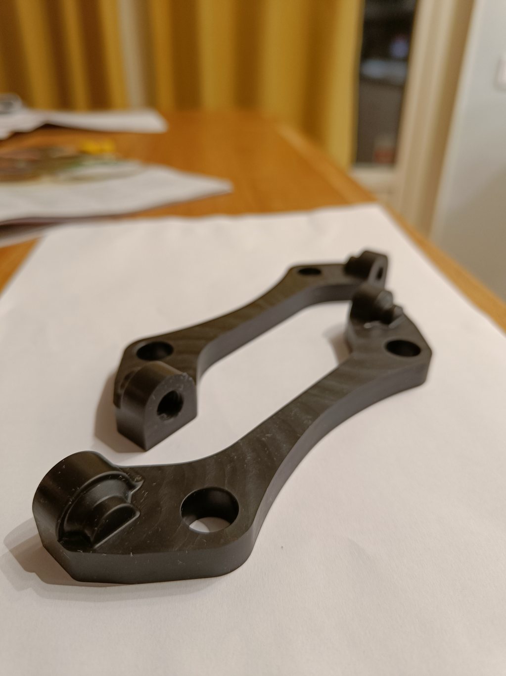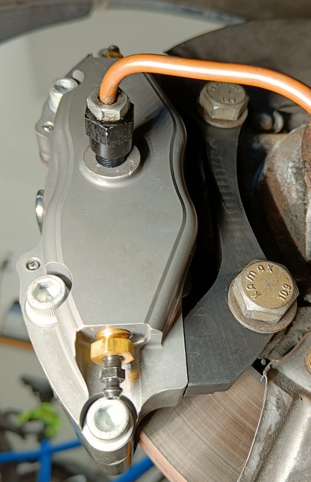 Did a little fun side project, didnt intend on swapping the rear calipers since everything worked really well, but at 160eur per caliper during black friday I couldnt resist. So here we are, everything fit up well after design/test fit with 3d prints and thankfully also after ordering the adapters machined in steel. the holes line up slightly awkwardly due to the screw placements, but it worked out fine in the end. Slightly painful to use tiny little 1/4" bleed nipples(will get rounded sooner or later), a bit shitty design, and i dont own tools in these ancient type of measurments, so that will have to be purchased for complete bleeding