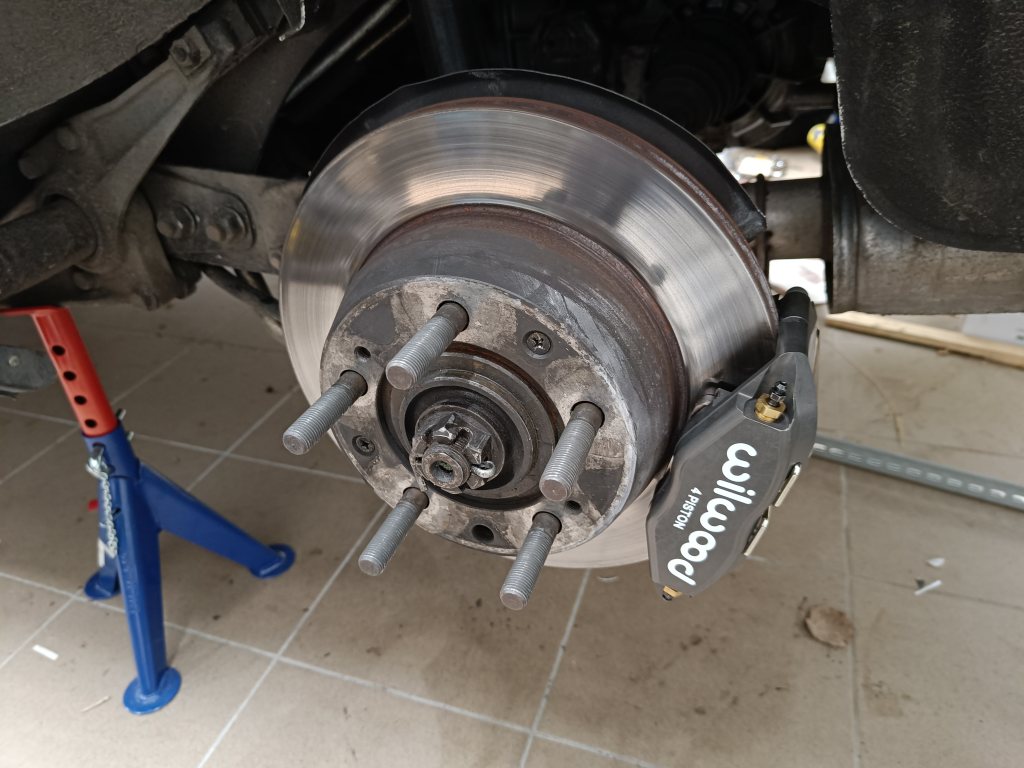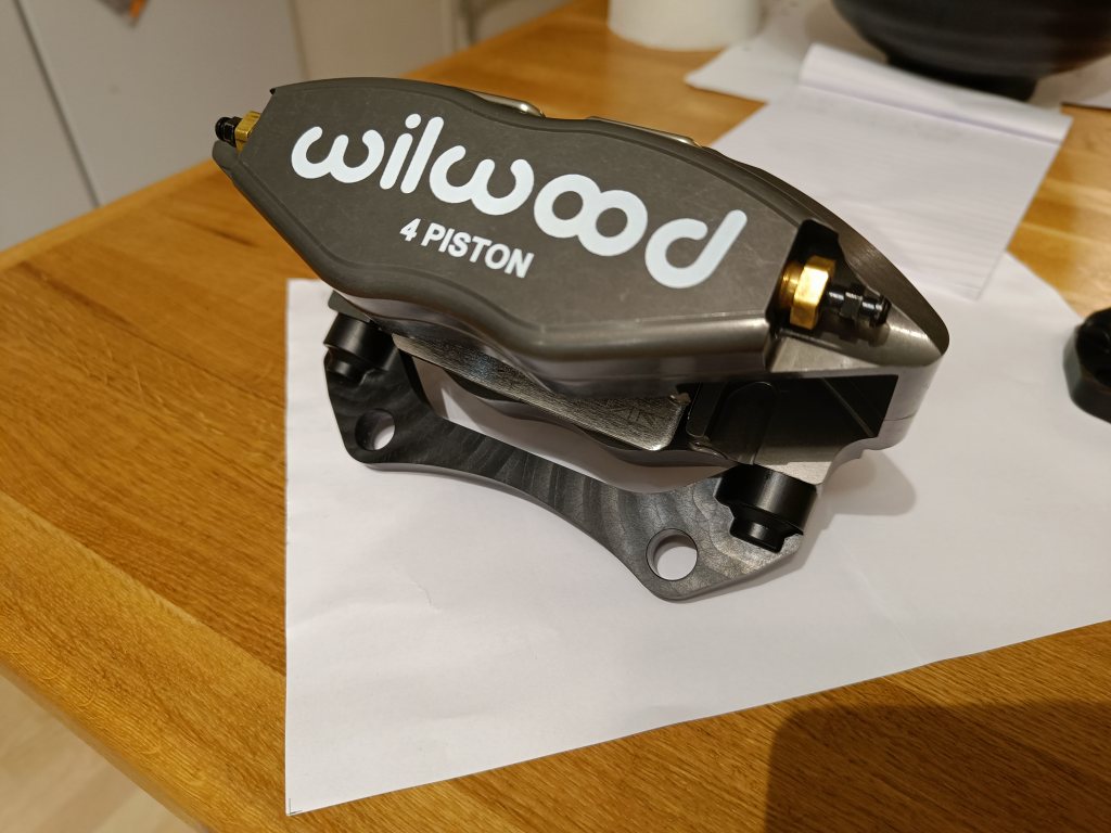 | They are even lighter than the little aluminium MINI calipers I used on the 4-bolt setup despite being a 4-pot design. Rather nice. |